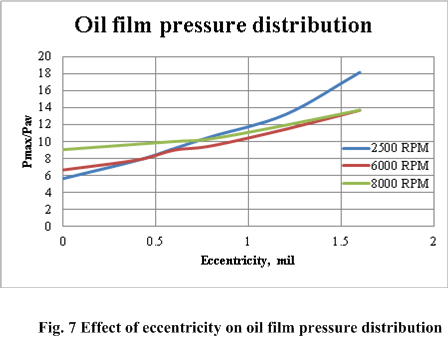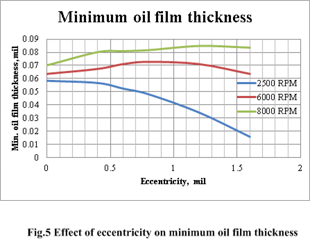The results of the calculation for minimum oil film thickness of the bearing with four various values of eccentricity (0, 0.4, 0.6, 0.8 and 1.2 mil) of the CR 807XPN are shown in Fig.5.